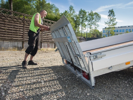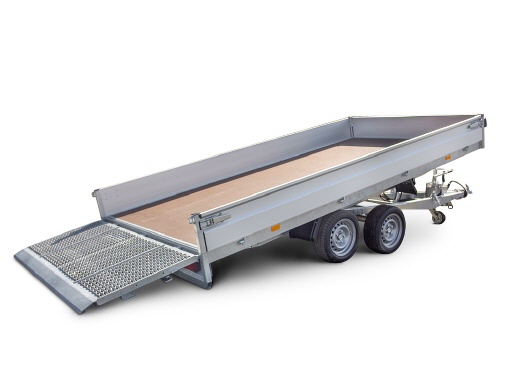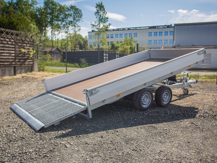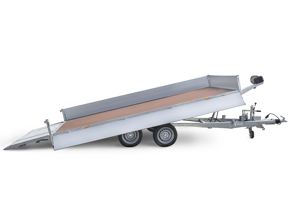 • hydraulisch kippbare Plattform , mit Rampe und nur 13° Auffahrwinkel