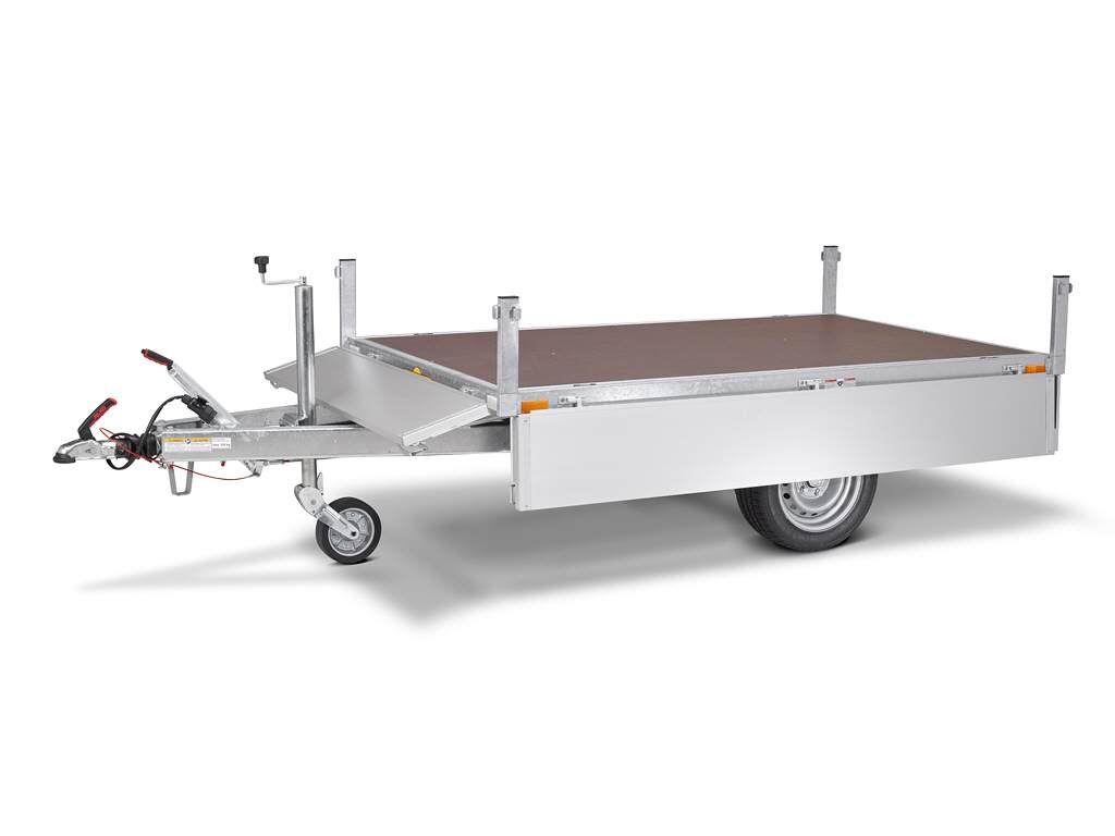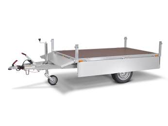 Der Hochlader HU ist kompromisslos für Haltbarkeit und Qualität konstruiert. Alle entscheidenden Metallkomponenten sind feuerverzinkt. Damit die Be- und Entladung besonders einfach vor sich geht, können Sie die Bordwände abklappen oder komplett abnehmen. Lasten lassen sich an versenkbaren Zurrbügeln leicht befestigen. Die niedrige Ladehöhe wird Sie im Alltag bei jedem Einsatz überzeugen.