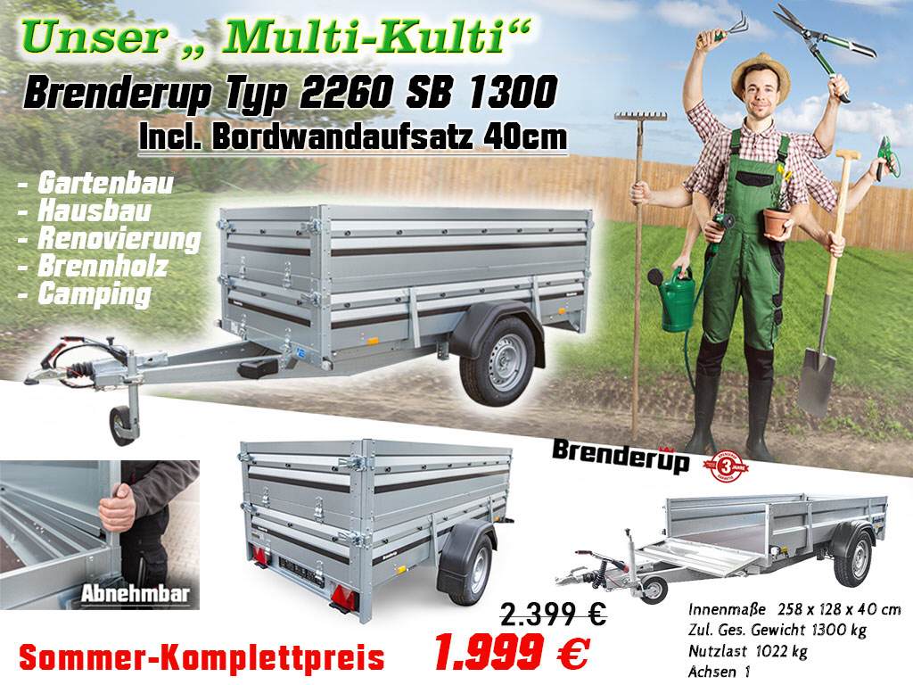 Sie benötigen einen kompakten Anhänger für Gartenarbeiten, den Transport von Grünabfällen, Werkzeugen oder Baumaterial? Modelle wie der Brenderup 2260 AB 1300 mit Laubgitter und Hochplane eignen sich perfekt für private und kommunale Einsätze rund ums Grundstück.