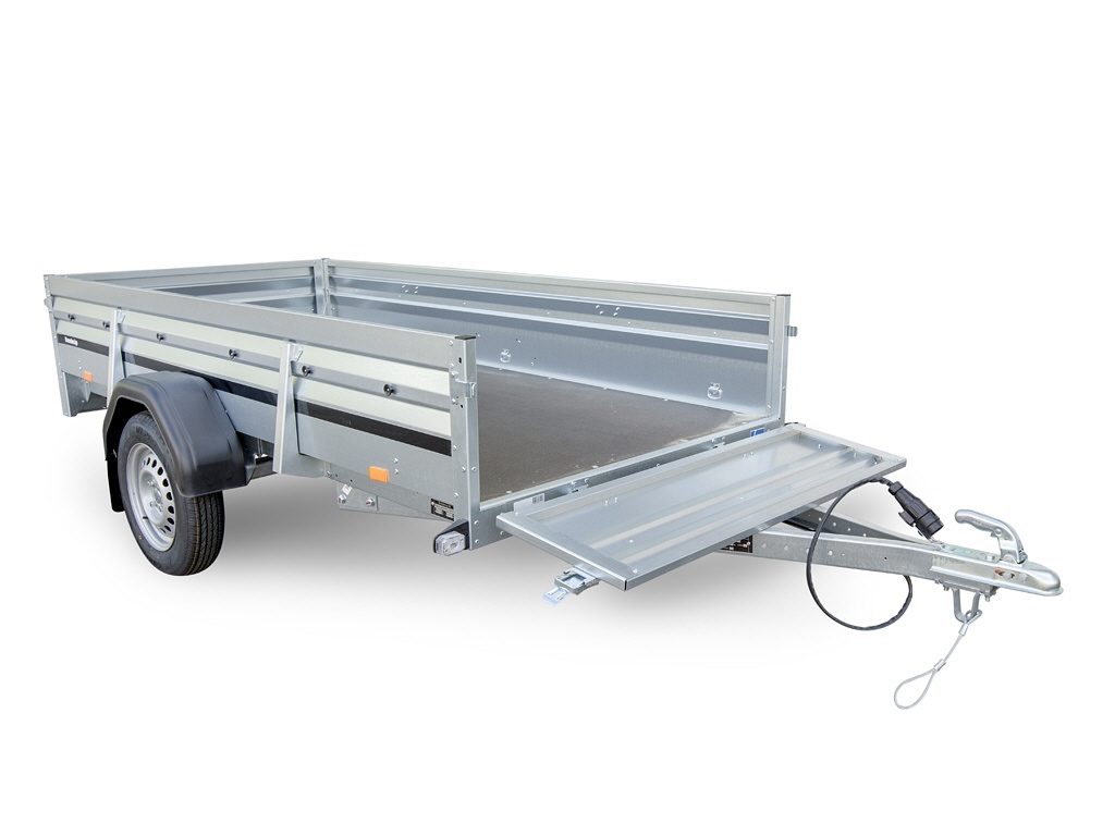 Der Anhänger ist leicht zu beladen und hat eine klappbare Vorder- und Rückwand für längerer Güter. Alle Ausführungen sind mit innenliegenden Zurrösen für eine sichere Verladung der Ware ausgestattet.