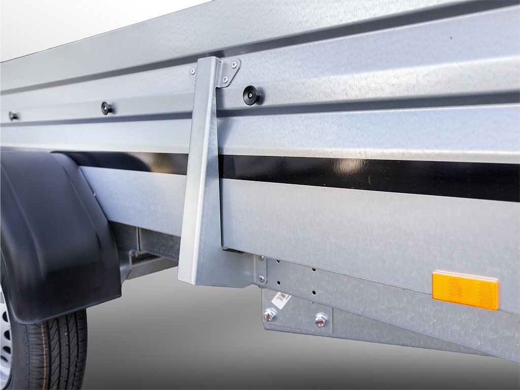 Feuerverzinkte Stahlbordwände mit einer Stärke von 1,25mm mit Spezial-Profilierung setzt Maßstäbe gegen etliche "Billig-Bauten" und Baumarkt-Anhänger