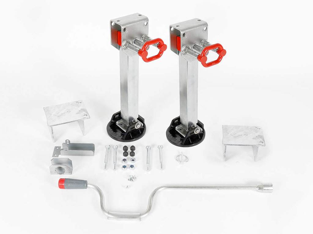 Klapp-/ kurbelbare Stützen für den Anbau hinten am Rahmen mit Montagesatz und Kurbel.