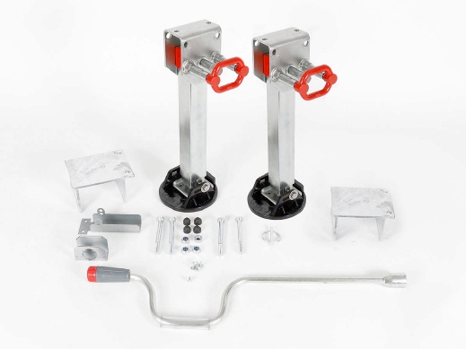 Klapp-/ kurbelbare Stützen für den Anbau hinten am Rahmen mit Montagesatz und Kurbel.
