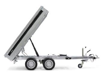 Ein perfekter Begleiter für den Unternehmer zum Transportieren und Kippen von Erde, Sand oder Kies. Ein robuster Rückwärtskipper als Doppelachser. Verstärkter Stahlboden mit elektrisch hydraulischer Kippvorrichtung für eine einfache Bedienung. Durch den hohen Kippwinkel der Ladefläche eignet sich der Anhänger zum Be- und Entladen von Kies, Holz und Baumaterial. Klappbare und abnehmbare Seiten, die montierten Planenknöpfe und die abnehmbaren Eckpfosten sind serienmäßig. 6 starke Verzurrösen sind im Stahlboden integriert. Der Anhänger kann zum z. B. mit einem Kastenaufsatz, einer Hochplane oder einem der anderen Zubehörteile, die in der Serie 4000 üblich sind, ausgestattet werden.