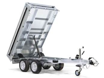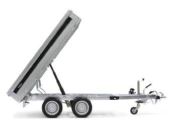 Ein perfekter Begleiter für den Unternehmer zum Transportieren und Kippen von Erde, Sand oder Kies. Ein robuster Rückwärtskipper als Doppelachser. Verstärkter Stahlboden mit elektrisch hydraulischer Kippvorrichtung für eine einfache Bedienung. Durch den hohen Kippwinkel der Ladefläche eignet sich der Anhänger zum Be- und Entladen von Kies, Holz und Baumaterial. Klappbare und abnehmbare Seiten, die montierten Planenknöpfe und die abnehmbaren Eckpfosten sind serienmäßig. 6 starke Verzurrösen sind im Stahlboden integriert. Der Anhänger kann zum z. B. mit einem Kastenaufsatz, einer Hochplane oder einem der anderen Zubehörteile, die in der Serie 4000 üblich sind, ausgestattet werden.