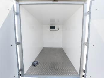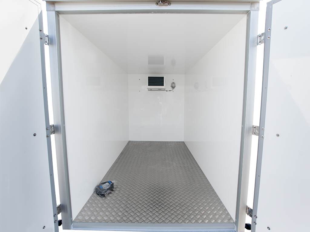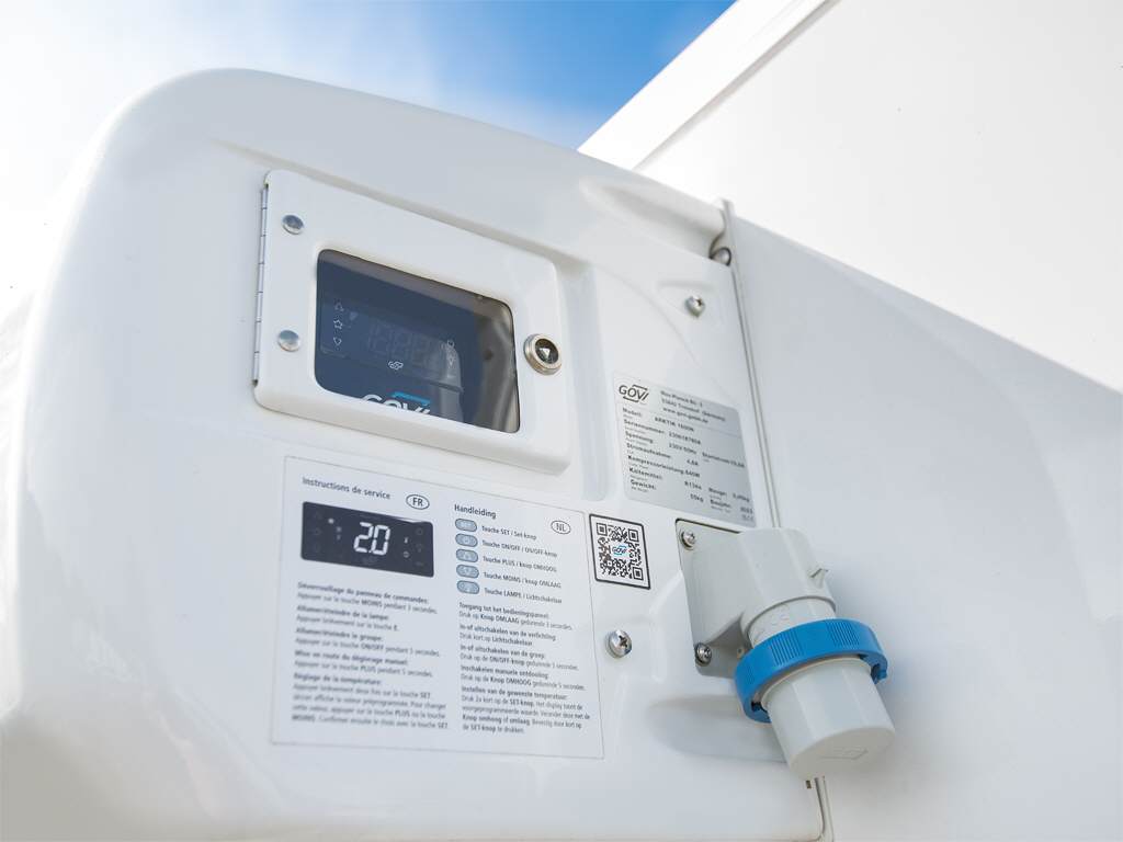 Über ein programmierbares elektronisches Thermostat sowie eine elektrische Abtauvorrichtung wird das Gerät in regelmäßigen Zyklen automatisch abgetaut. Im Digitalthermostat sind der Steuerschalter sowie ein Lichtschalter für die Innenbeleuchtung des Anhängers integriert.