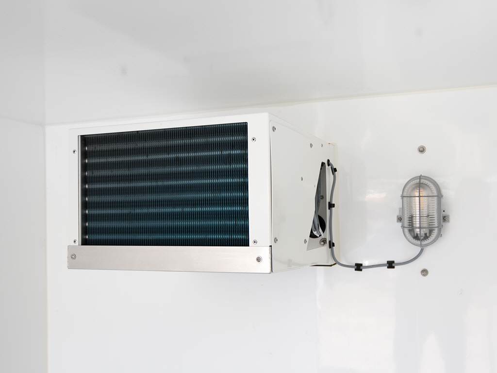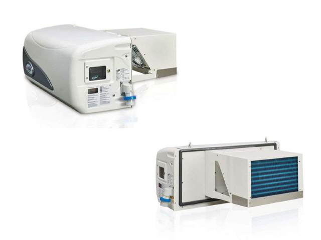 Das Kühlgerät besteht aus zwei Baugruppen: einem Teil mit Kondensator außen am Anhänger und einem Teil mit Verdampfer im Anhängerinneren.