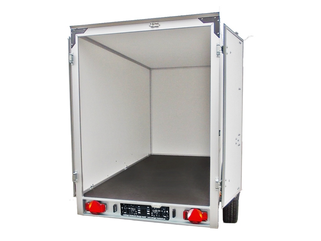 Der Einachs-Plywoodkoffer überzeugt mit seinen durchdachten Detaillösungen und seinen vielseitigen Einsatzmöglichkeiten. Der Rahmen und das Fahrwerk sind aus feuerverzinktem Stahl gefertigt und verleihen der Plywood-Koffer-Serie eine lange Lebensdauer. Die Seitenwände sind aus 15 mm Mehrschichtholz mit Spezial-Kunststoffbeschichtung gefertigt, die auch mit Ihrer Firmenwerbung beklebt werden kann. Alle Plywood-Koffer sind mit Scharnieren und einem abschließbaren Drehstangenverschluss aus verzinktem Stahl ausgestattet. An den Türen sind Dichtungen aus Kunststoff montiert, die ein wassergeschütztes transportieren Ihrer Ware ermöglichen. Die massiven pulverbeschichteten Aluminium-Eckverstärkungen im Dachbereich und an der Stirnwand unten verleihen den Plywood-Koffern von Humbaur eine extreme Stabilität. Der Boden der Plywood-Koffer besteht aus mehrfach wasserfest verleimtem Spezialholz mit rutschhemmender Phenolharzbeschichtung und 15 mm Stärke. Das integrierte seitliche Zurrsystem ist in den eloxierten Aluminium-Rahmenprofilen angebracht. Pro Zurring haben wir eine Zugkraft von 400 kg und das Dekra geprüft. Es sind pro Seite 3 Zurringe montiert. Das System ist auf Wunsch noch erweiterbar und lässt dem Transporteur ausreichend Möglichkeit das Ladegut zu sichern. Einfassprofile, ein verwindungssteifes Heckportal und Regenrinnen sind aus eloxiertem Aluminium und bieten ein Höchstmaß an Schutz vor Korrosion. Der Einachs-Plywood-Koffer von Humbaur, der ideale Partner für den Transport Ihrer Güter.