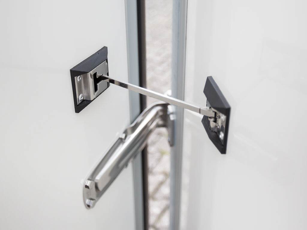 Scharniere und Verschlüsse aus V2A Edelstahl, einbruchgeschützt und extrem langlebig.