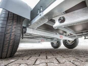Zusammen mit einem massiven Stahl-Chassystem mit extra vielen Querauflagen ergibt sich ein echter Gewerbeanhänger mit hoher Punktbelastung.